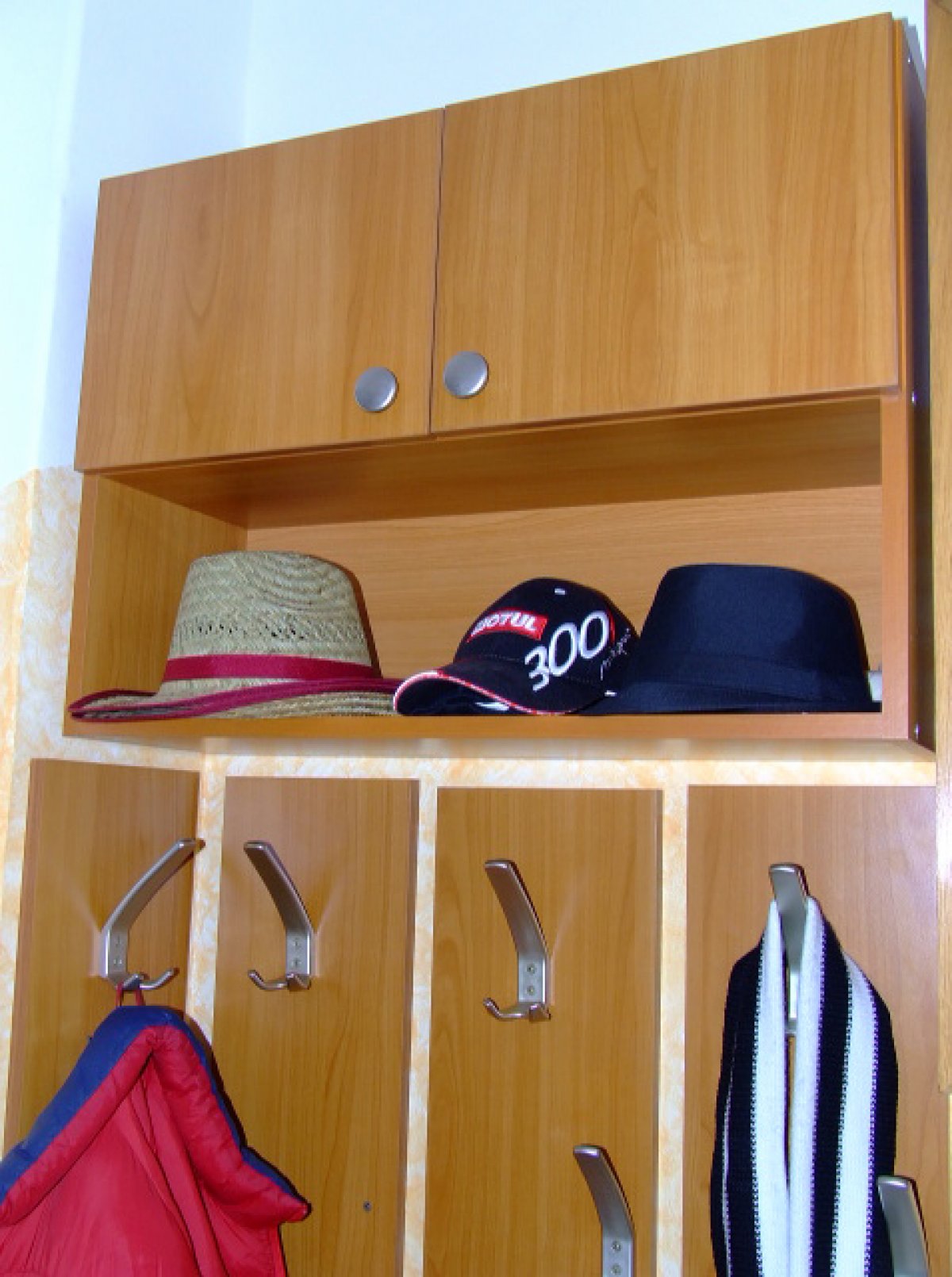 Designul cuierului ar trebui să fie funcțional și să se potrivească cu spațiul disponibil. Luați în considerare adăugarea unui spațiu suplimentar deasupra pentru pălării și accesorii, precum și o bară pentru hainele lungi.