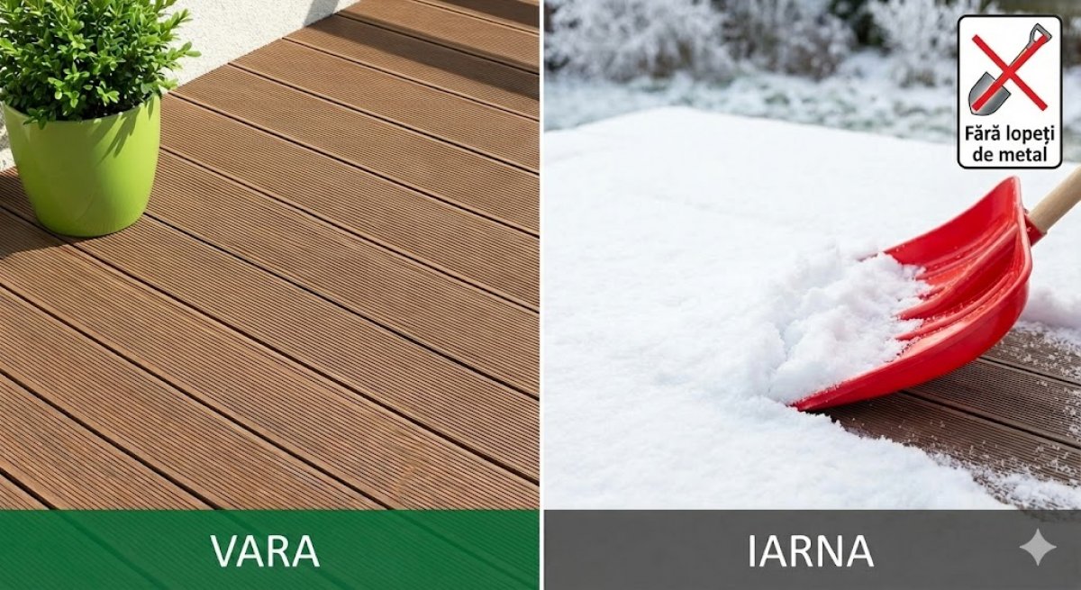 Totuși, deși WPC-ul este supranumit "lemnul care nu necesită întreținere", acest lucru nu înseamnă "zero atenție". Iarna vine cu provocări specifice – cicluri de îngheț-dezgheț, contracții ale materialului și depuneri mecanice.