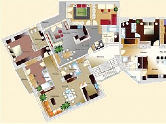 Apartamentul este decorat cu mobilier Berloni, placi de gresie din granit Caesar, obiecte de iluminat marca Flos si accesorii Alessi, toate marci italiene de prestigiu, consacrate pentru stilul lor rafinat si inovativ.