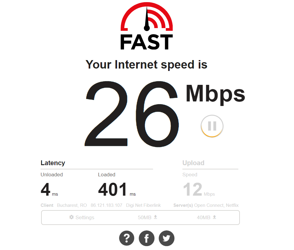 Trebuie mentionat faptul ca abonamentul la internet imi pune la dispozitie internet prin cablu cu o viteza de 1Gb/s. Astfel rezultatele au fost urmatoarele: