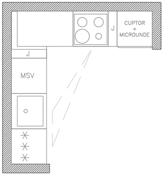 Indiferent de dimensiuni sau formă, orice bucătărie ar trebui să aibă o amenajare optimă, în conformitate cu conceptul de triunghi de lucru. Această metodă a fost dezvoltată în anii 1920, fiind una dintre primele abordări eficiente pentru organizarea unei bucătării. Prin intermediul triunghiului, este creată o cale clară între zona de gătit (plita), zona de curățare (chiuveta de bucătărie) și zona de depozitare a alimentelor (frigider).
